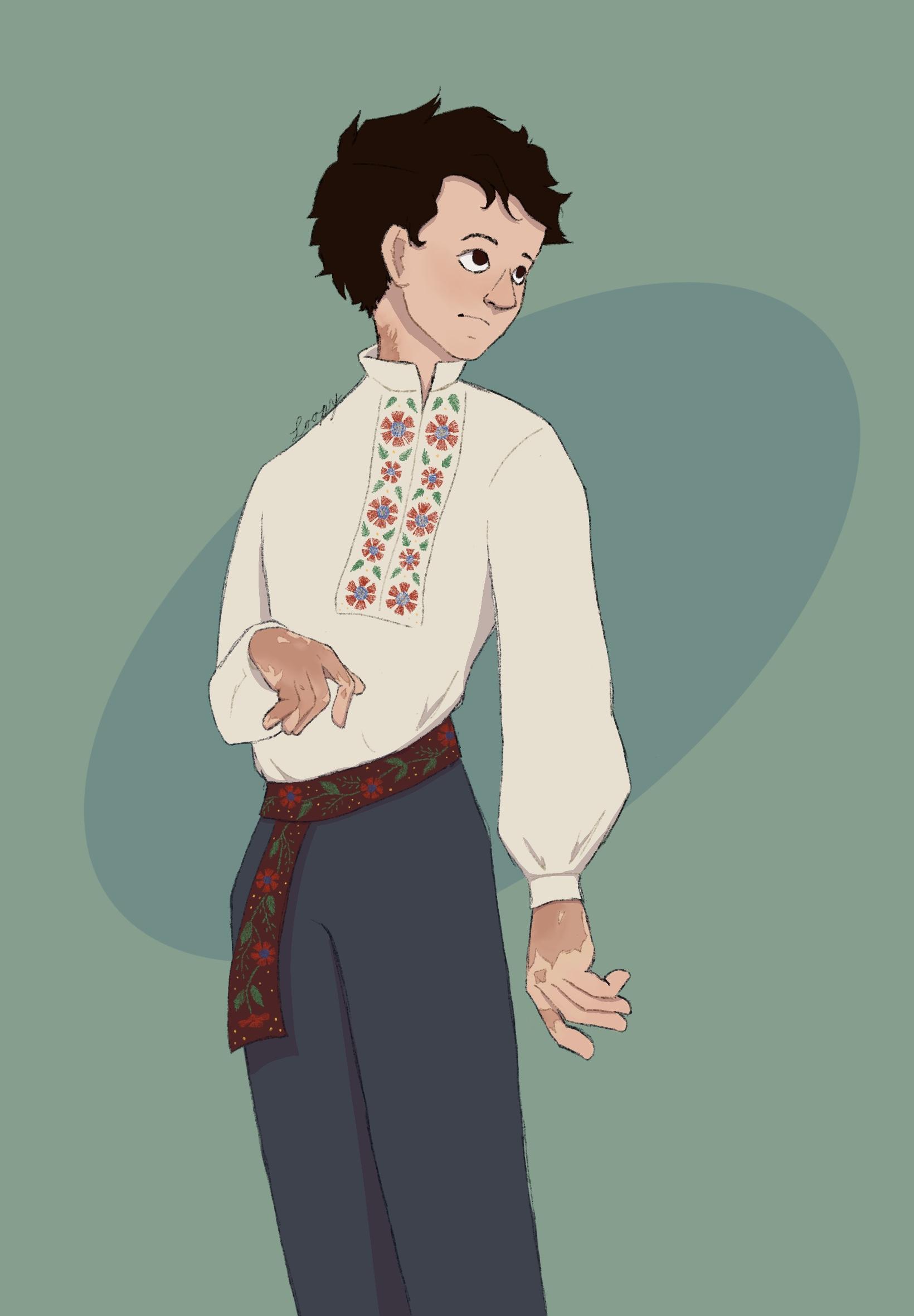 Embroidery can be a pain to illustrate. You did a great job! All the details, his expression and scarring, are right. My little Slovak-Slavic boy. I love him. It’s lovely. Thank you again!