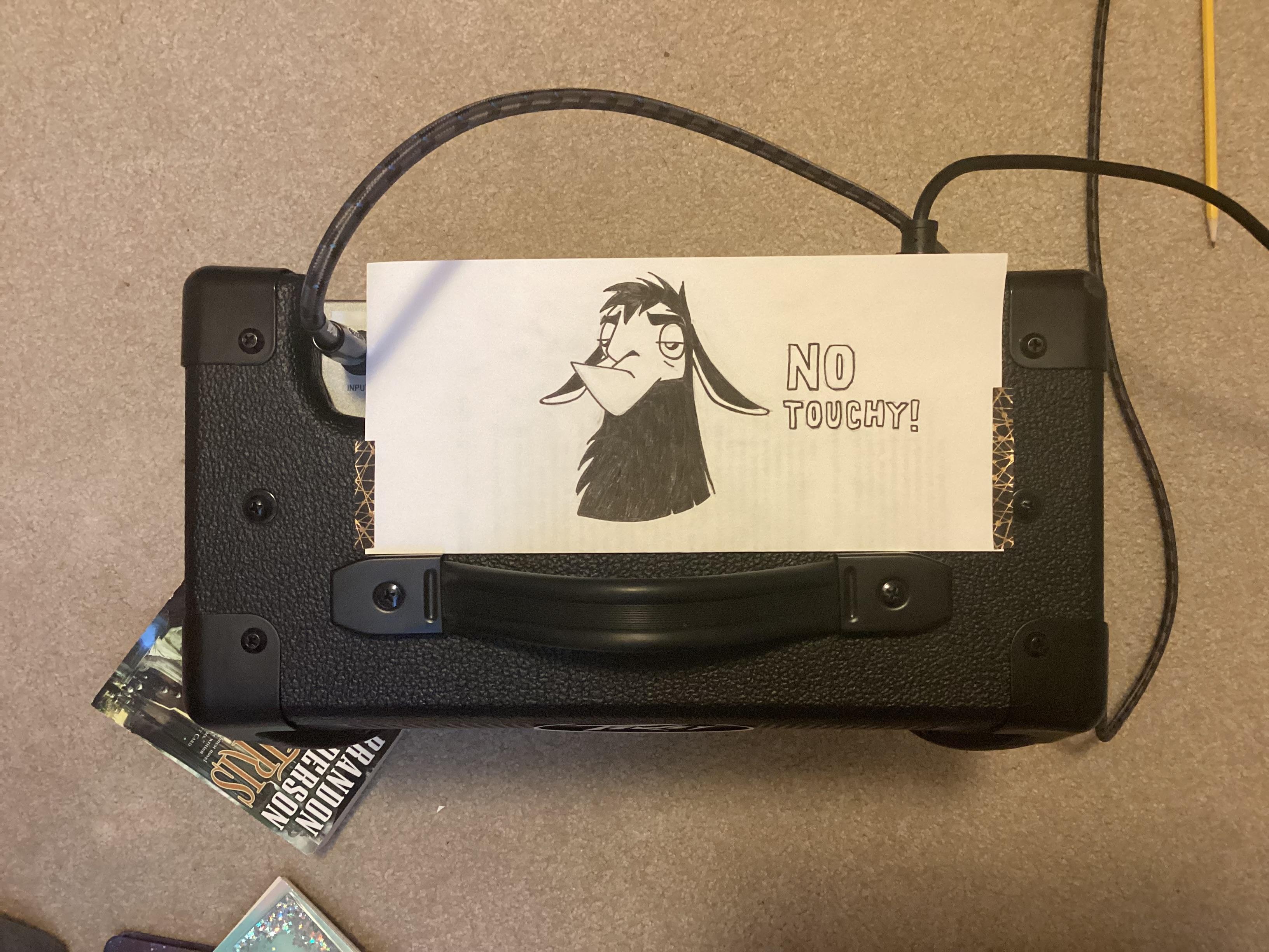 For context, I do not want children (or my crazy friends) playing with my new amplifier and bursting their eardrums. So I drew this meme to discourage them from touching the knobs.