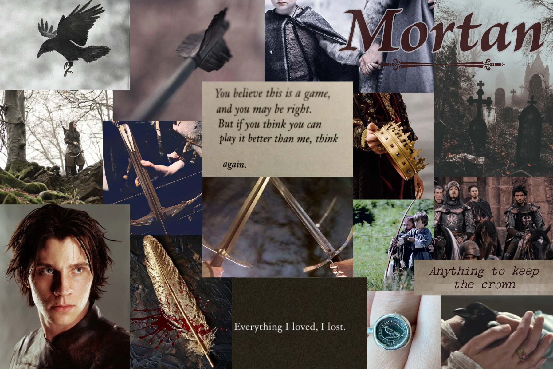The raven seems to be something like a house symbol. I like the idea of him having one as a pet. It fits his moodiness and intelligence. He is, of course, a person of violent moods, but also an epic schemer and strategist. He probably likes logic games like Chess, but he also likes to make up his own rules. He’s a skilled warrior, especially in more long-distance weapons.