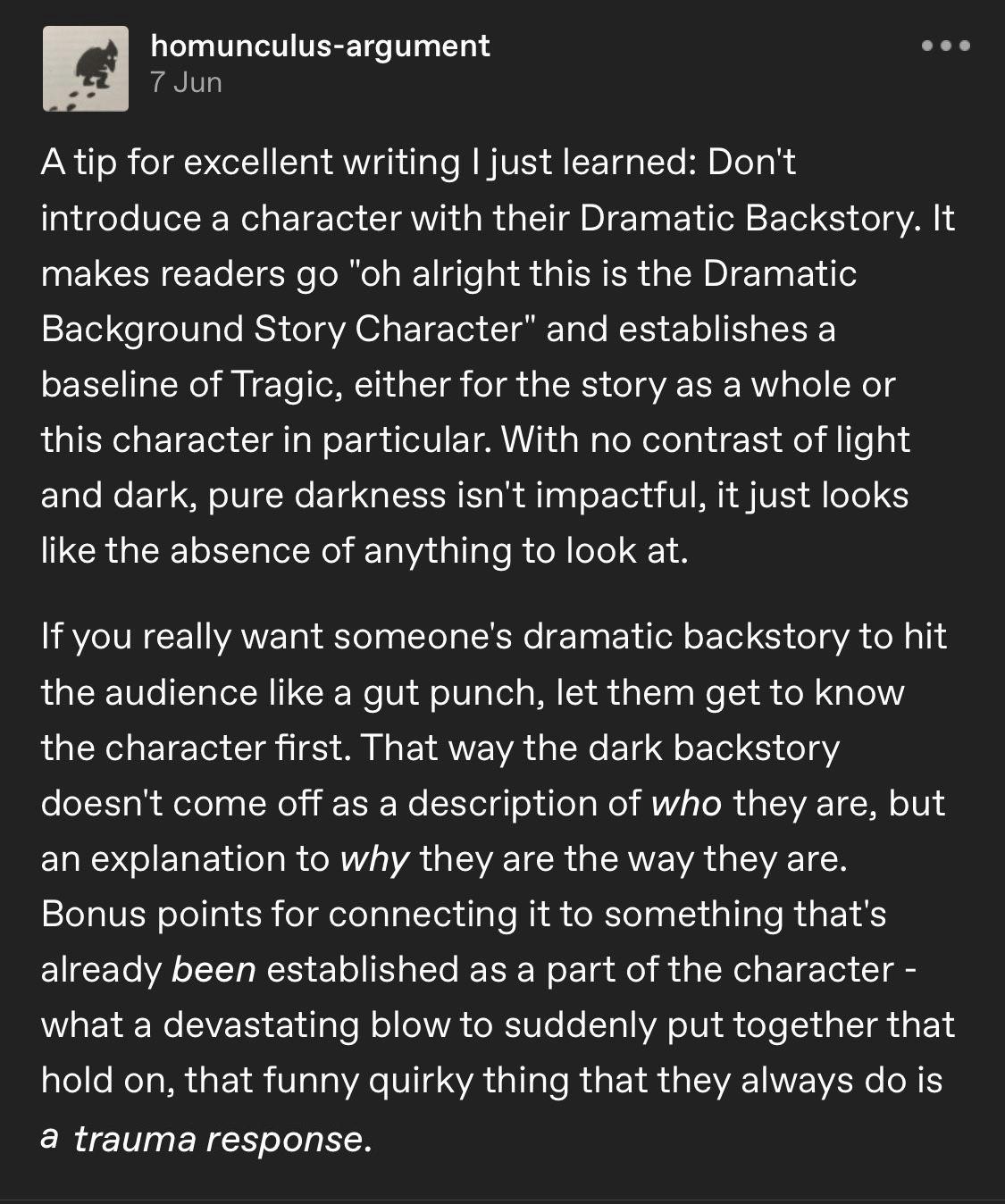 This isn’t a rant. I just didn’t know where to post this. But I found a thing on Pinterest that I think explains exactly why I don’t like talking about my character’s backstories: